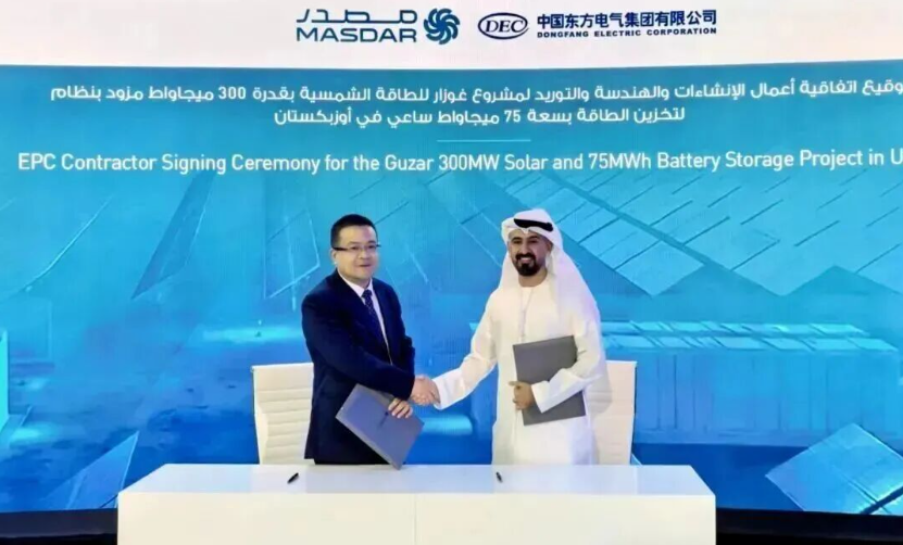 On January 15, Dongfang International, a subsidiary of Dongfang Electric Corporation, signed an EPC contract for the Guzar Solar and Energy Storage Project, the largest integrated solar-plus-storage project in mountainous terrain in Uzbekistan.