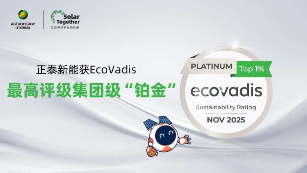 On November 27, the internationally authoritative sustainability rating agency EcoVadis announced its latest results. Astronergy achieved an outstanding score of 86 points, successfully earning the “Platinum” rating, making it the first enterprise in China’s photovoltaic industry to receive a group-level Platinum certification.