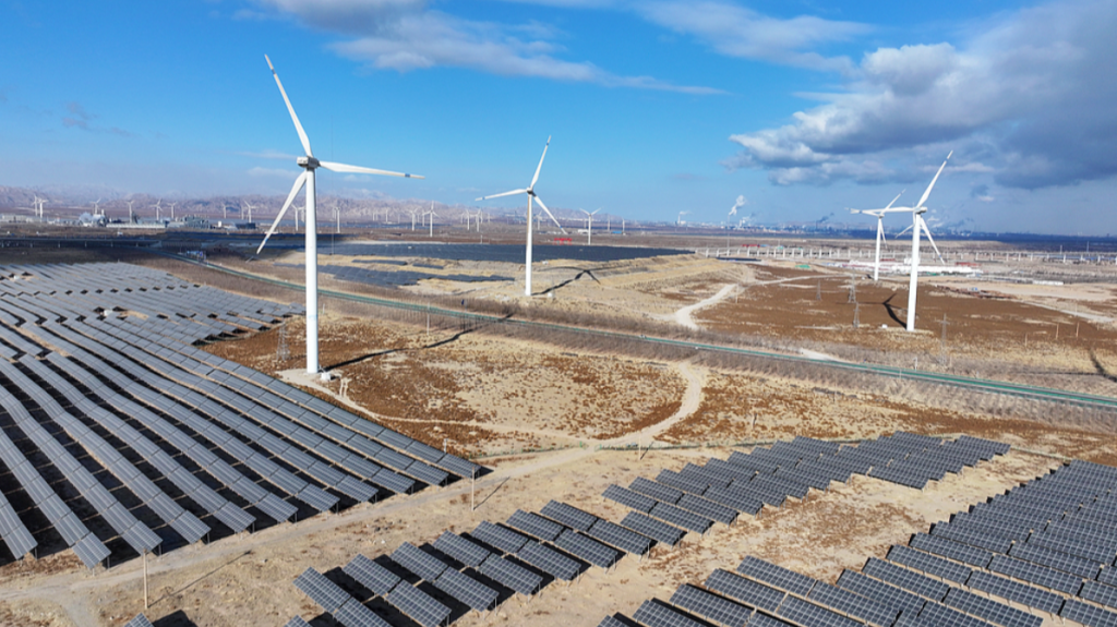 Wind turbines and photovoltaic panels at a clean energy power station in Huinong District, Shizuishan City, northwest China’s Ningxia Hui Autonomous Region, January 5, 2026. /VCG