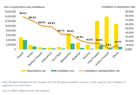 However, not all applications translate into installed projects. The report highlights a “conversion rate” – the percentage of applications that result in successfully deployed systems. Gujarat and Kerala were the most successful in converting applications into installations, with conversion rates exceeding 65%.