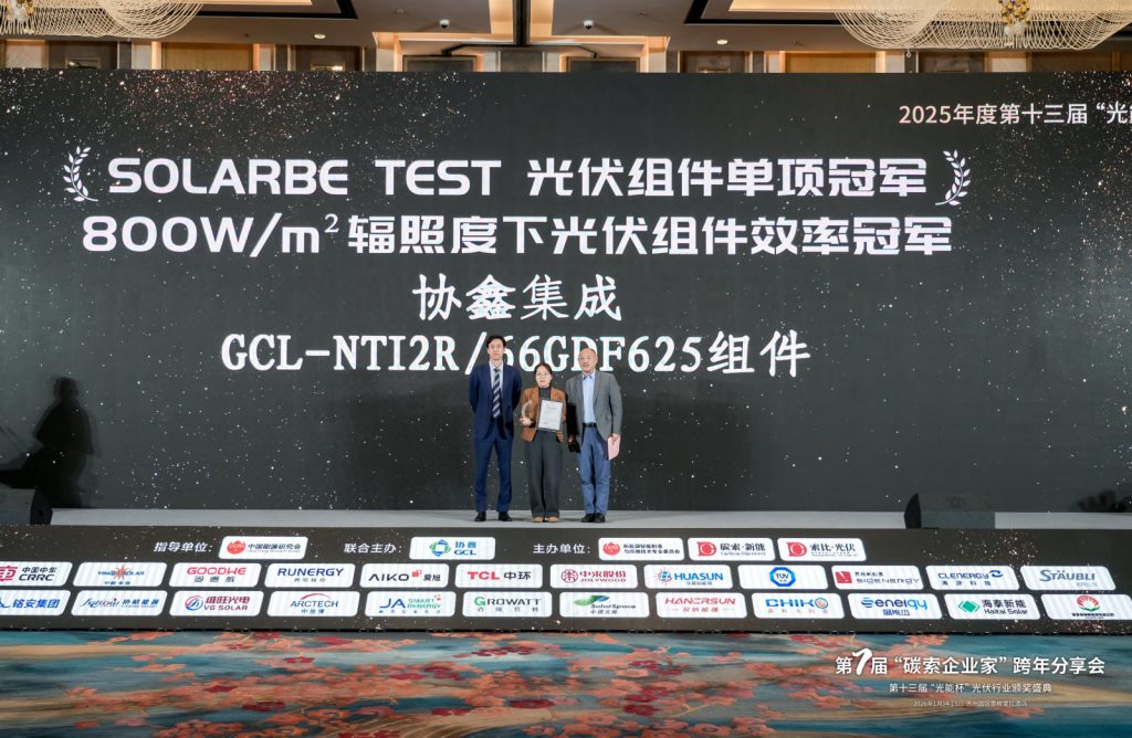Recently, the results of the SOLARBE TEST Awards for PV Module on Specific Performance Index (2025), jointly launched by Carbon Discovery, Solarbe, and Gsolar Test, were officially announced. A module from GCL System Integration Technology Co., Ltd. achieved a conversion efficiency of 23.43% under low-irradiance operating conditions of 800 W/m², demonstrating outstanding performance among 12 competing modules and successfully securing the award for Champion of PV Module Conversion Efficiency at 800W/m² Irradiance. This achievement not only showcases GCL System Integration’s formidable technical capabilities in the PV module sector but also, through actual product performance, validates the technical value of a real-world operating condition orientation, providing strong practical support for the industry’s reconsideration of performance evaluation standards.