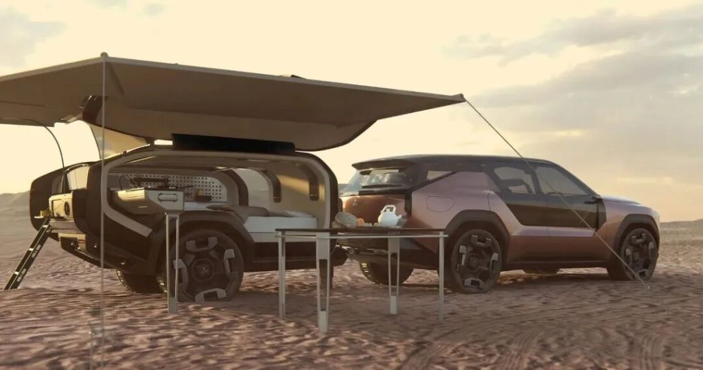 Notably, it also utilizes the Elevance Concept’s high-capacity battery, combining it with a towable trailer featuring a spacious interior equipped with a kitchen and shower.