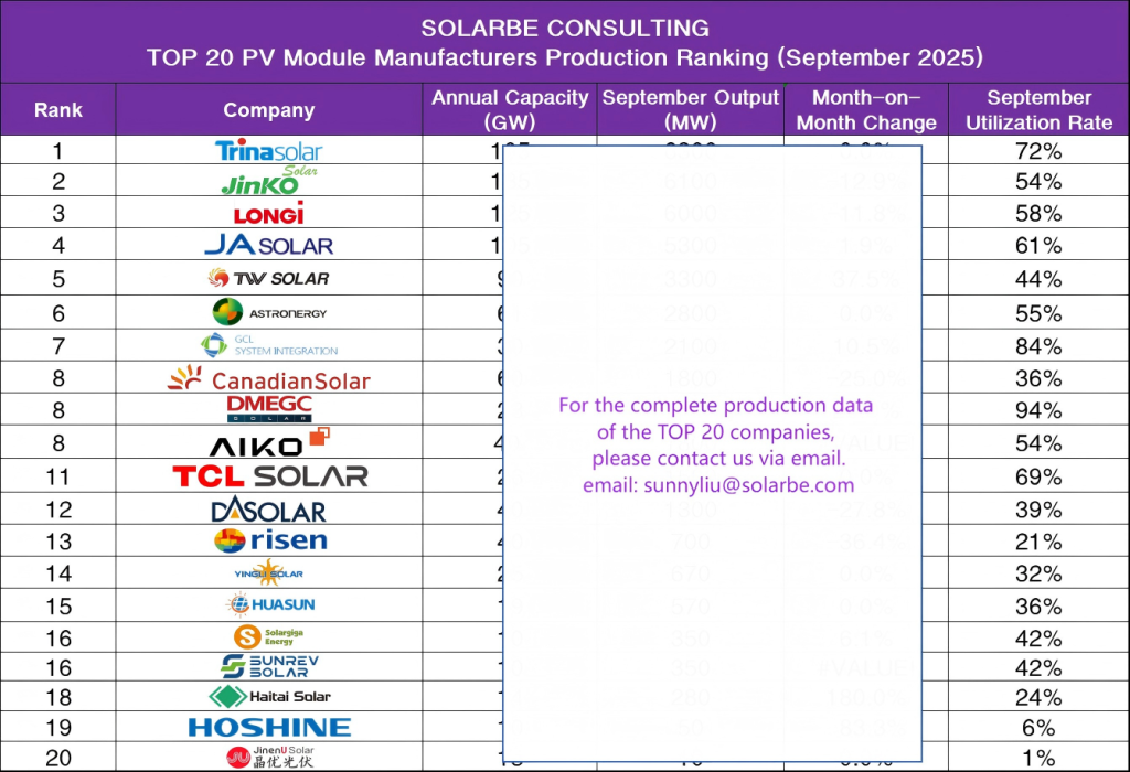 This ranking is released by Solarbe Consulting, focusing on the production volume, capacity utilization, and production rhythm of Chinese PV module manufacturers. It utilizes four core indicators—Annual Capacity, Monthly Output, Month-on-Month Change, and Utilization Rate—to present a multi-dimensional view of the real production landscape.