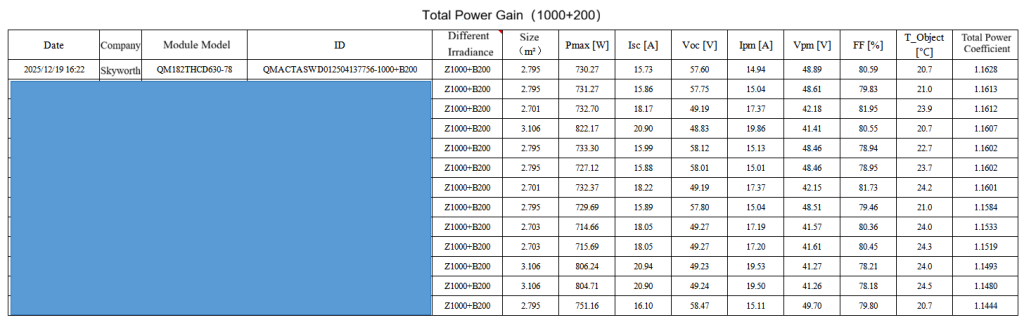 Recently, the results of the SOLARBE TEST Awards for PV Module on Specific Performance Index(2025), jointly launched by Carbon Discovery, Solarbe, and Gsolar Test, were officially announced. In the evaluation for the Total Power Performance of 10 PV module models, Shenzhen Skyworth Photovoltaic Technology Co., Ltd. stood out with a Total Power Coefficient of 1.1628, demonstrating exceptional technical prowess in front-rear synergistic power generation, and successfully secured the Champion of PV Module Total Power Performance award. This achievement not only serves as authoritative recognition for Skyworth Photovoltaic’s deep expertise in bifacial technology but also, through measured data, validates the industry value of a “Total Power Evaluation System,” providing a highly significant practical reference for moving beyond competition centered on single metrics.
