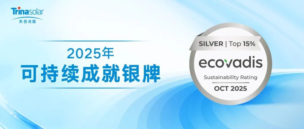 Trina Solar has recently been awarded the EcoVadis 2025 Silver Medal for its outstanding performance in environmental protection, labor and human rights, ethics, and sustainable procurement. With a high score of 72, the company ranks among the top 12% of 150,000 global enterprises assessed by EcoVadis. This achievement underscores Trina Solar’s leading capabilities in supply chain management and sustainability, as well as its long-term commitment to corporate social responsibility.