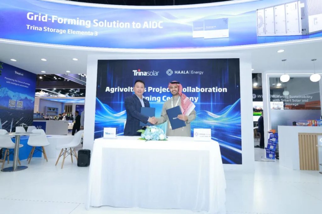 On January 14, at the World Future Energy Summit (WFES), Trina Solar signed a strategic cooperation agreement with Haala Energy, a leading photovoltaic developer and installer in Saudi Arabia. This collaboration focuses on Saudi Arabia’s unique agricultural scenarios, aiming to drive the implementation of efficient and sustainable photovoltaic solutions in the country’s agrivoltaic applications.